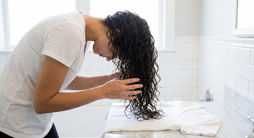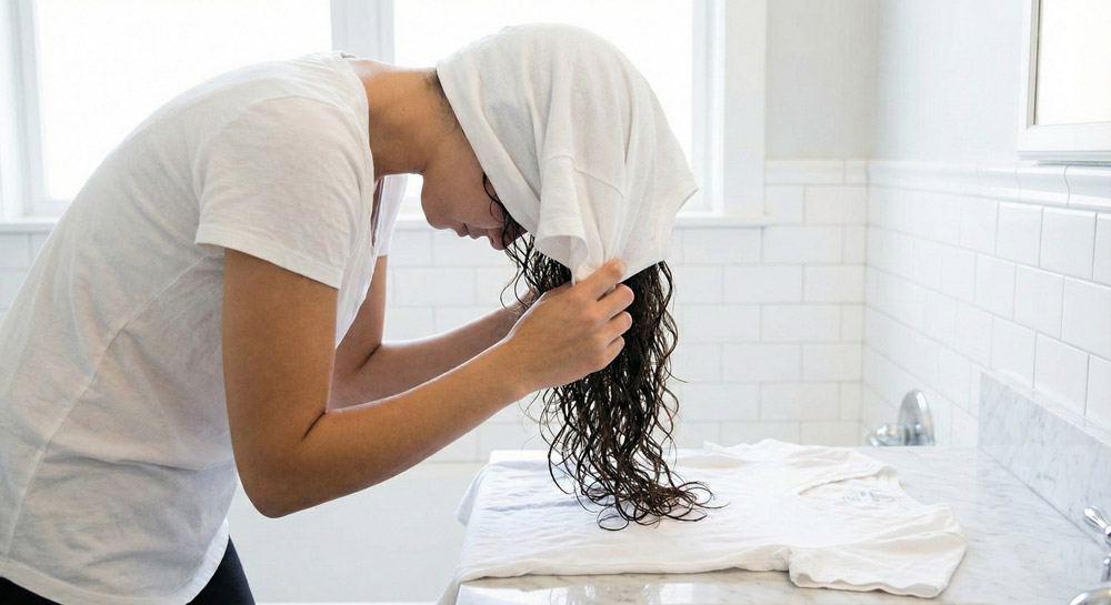 Regular towels have rough fibers that create friction and lift your hair cuticle. I started using an old cotton t-shirt to gently squeeze water from my hair, and the difference was immediate.